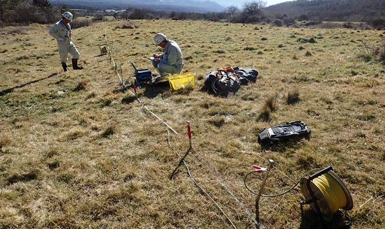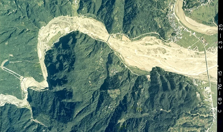 対象地域における帯水層の平面的分布や深度分布を把握するために、その地域の地形・地質に関する情報を把握します。これら情報は、既存資料の収集・検討、空中写真判読(地形、土地利用)、地表踏査(地形・地質)、物理探査(帯水層把握)などを行うことで得られます。